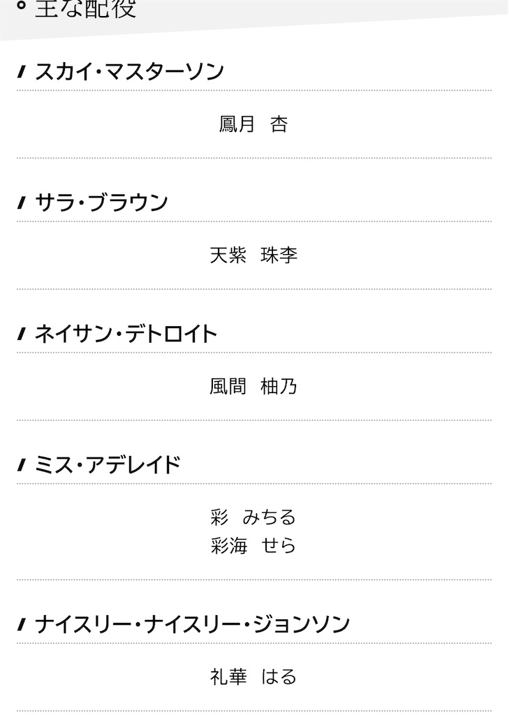 月組東京公演中のこんなに早く『GUYS AND DOLLS』の主な配役が出るなんて思っていませんでした。